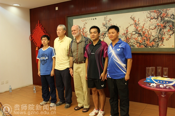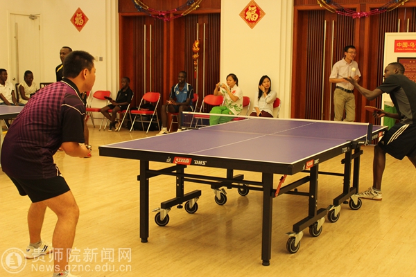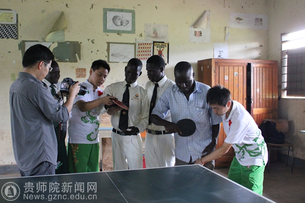赵利平与乌干达国家乒乓球队员进行友谊赛