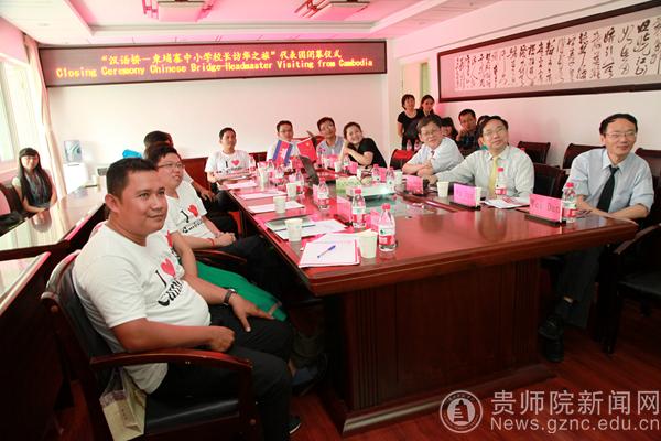 仪式上播放了我校为柬埔寨校长团的成员们制作的视频短片。视频记录了柬埔寨校长团在六天时间里在我校的安排和接待下对贵州进行考察访问的精彩瞬间。