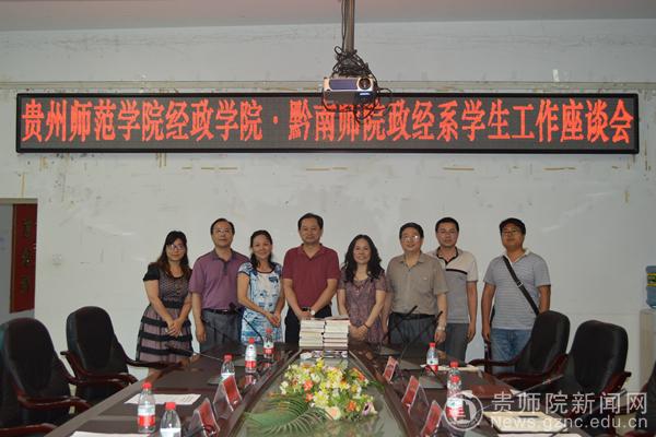 2014年6月27日,经济与政治学院一行20人赴黔南民族师范学院政法经济系进行为期两天的交流学习。在黔南民族师范学院政法经济系党总支书记蒙景村、系主任吴晓蓉、系副主任李琼及教师代表的陪同下,一起参观了黔南民族师范学院的体育馆、教学楼、物流管理实验室以及民族文化展览馆等校园建设与环境。