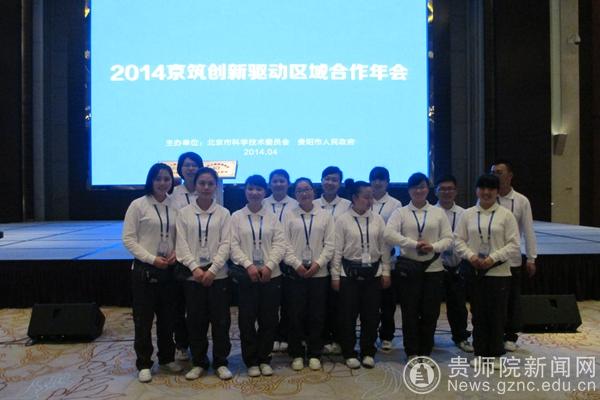 图为我院志愿者在京筑创新驱动区域合作年会会场的合影