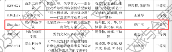 由费广玉老师指导,杨雨依、吴于华、罗佩蓉、姜元春、袁荟团队完成的《低空经济——空中视角激活黔南策划方案》,探索低空经济赋能文旅体验的新路径,在旅游新业态策划赛道荣获国家级三等奖。