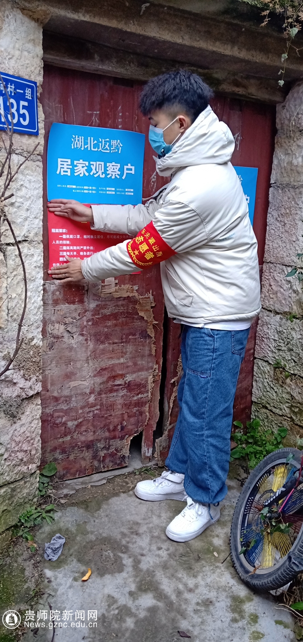 在众多的志愿者中,杨泽武同学是最早一批投入防疫工作的志愿者,担任万象城网页版艺术团团长的他,多才多艺,品学兼优,深得师生喜爱。春节期间回到老家过年,身在家乡的他接到志愿招募,第一时间响应当地村支两委的号召,即刻投身参与到当地的抗疫工作中,通过走访村寨、入户排查、宣传防疫知识、参与检测等工作,他成为一名疫情防控志愿者。他用青春的身影,扛起了这场战役的青春担当。