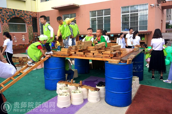 息烽县小寨坝幼儿园由国培班主任冯静和学前教育专业李姿雨老师带队。首先,小寨坝中心幼儿园的教师及幼儿向国培学员在户外就自主游戏活动进行了集中展示;其次,围绕户外自主游戏活动开展过程中存在的“安全”、“家园沟通”、“游戏主题的生成”、“自主游戏活动中教师的指导策略”等问题,国培学员、小寨坝幼儿园教师及教科院学前教育专业教师在活动室展开研讨,会上国培学员还纷纷就自己所思所想和小寨坝幼儿园老师展开了讨论。