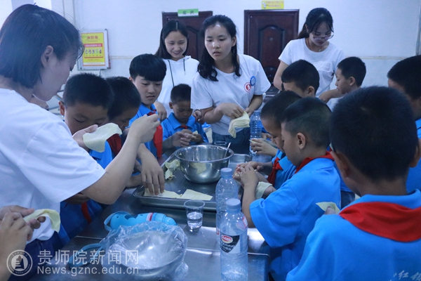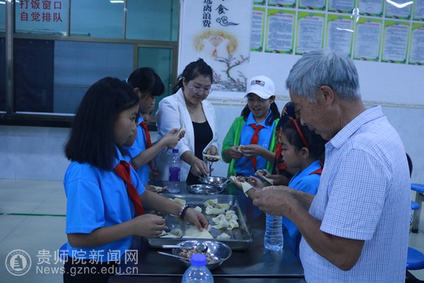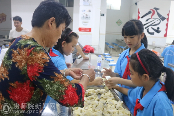 首先,我校志愿者陈会涛向家长们介绍了孩子们近两个星期的生活情况,表示孩子们在这里既有安全保障,又能学到知识,会收获一个愉快、充实的假期,让家长们放心。接着,陈会涛向学生强调了活动纪律,向家长介绍了本次活动的流程及意义。随后,我校志愿者引导家长与孩子们去学校的食堂,由家长、我校志愿者带领孩子包饺子。在包饺子的过程中,孩子们一个个跃跃欲试的心情溢于言表,有的分配食材、有的包饺子。大部分孩子都是第一次动手包饺子,气氛非常活跃,其乐融融。最后孩子们向大家展示了各自亲手制作的饺子,一个个形态各异,千姿百态。