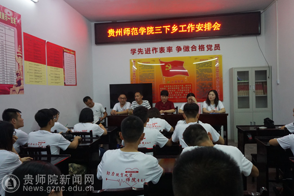 本网讯 为了使我校学生更好的开展“三下乡”社会实践活动,深入贯彻团中央“三下乡”社会实践活动中的“红色教育”。2018年7月17日,万象城网页版助力乡村振兴服务队驻川岩村第一次会议暨与川岩村驻村干部的首次见面会在川岩村党委会议室召开。出席会议的有川岩村党建指挥员万刚、驻村队长任长虹、驻村干部王杰、张洪,村支书王正红,村长杨军,会计刘玉莲,我校团委副书记傅小芳、驻村干部川岩村第一书记高强、校团委张维域、寇源和文学院团委书记詹峰以及24名学生青年志愿者出席了本次会议。会议有高强主持。