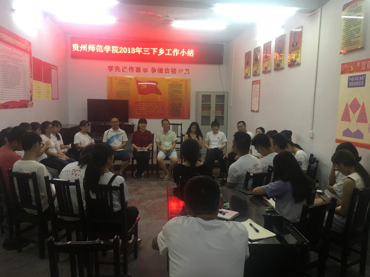 晚上,校团委副书记傅小芳、我校驻村干部高强、保卫处徐超老师、校团委寇源和张维域老师及所有志愿者召开总结大会。首先傅小芳总结了今天的工作和介绍了今后三天的工作安排。傅小芳对所有志愿者们的工作表示了肯定,并希望大家继续努力,为川岩村的脱贫攻坚奉献自己的绵薄之,并再次强调了安全的重要性及安全的注意事项。接着,高强对活动方案中的某些内容进行了补充,并与所有人员分享了驻村干部的经历与感悟。最后,应志鹏、王倩等同学分享了“三下乡”活动的感悟、致力于脱贫攻坚的热情及困惑。高强对同学们的困惑进行了一一解答。