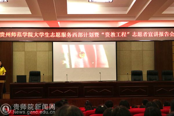 本网讯 繁华似锦志西去,不悔青春凯歌还。5月17日下午,由贵州省西部计划项目办组建的宣讲团在我校召开大学生志愿服务西部计划暨“资教工程”志愿者宣讲报告会。宣讲团成员有传梦公益基金项目创始人孔维、传梦公益基金项目总监高巍、宣讲团成员资教教师李龙茜、贵阳教师计划志愿者周蕊。会议由团委张维域老师主持,校团委副书记傅小芳、贵阳团市委青年志愿者指导中心负责人何浩出席会议,我校11个学院的应届毕业生共260余人参加宣讲会。