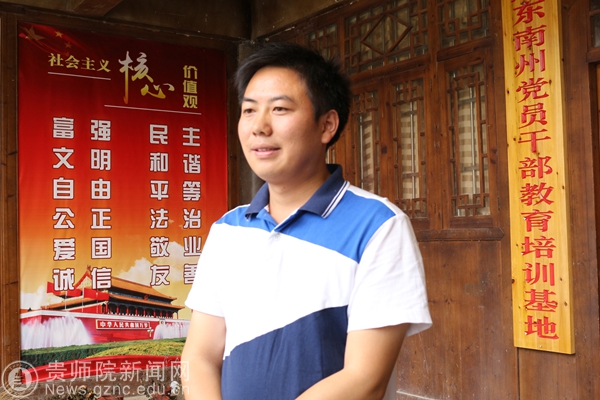 毕业两年多了,在师院还能够人气那么旺的学长之中,他算是其中的一个。他在校期间,积极参与社会实践活动,曾在学校大学生文化交流协会、春晖服务社、院学生会和社团联合会留下过关于他的故事,留下过他的身影。对师院的感情也就是在这些学生组织工作中一点一滴积累起来的,曾经为了搞好学生组织活动与朋友而争辩过,为了起模范带头作用而“逃课”来以身作则,专门找一些吃苦耐劳的兄弟姐妹些在办公室加班熬夜做材料。靠着人格魅力在学弟学妹获得良好的口碑。当初是何等埋怨自己学生社团事情多,没有时间去复习考证,甚至还挂过科。可如今却十分想念在母校的日子。经常通过新浪微博、社团活动交流群,社联的小伙伴些向他“汇报”着这些年师院里发生的点点滴滴。