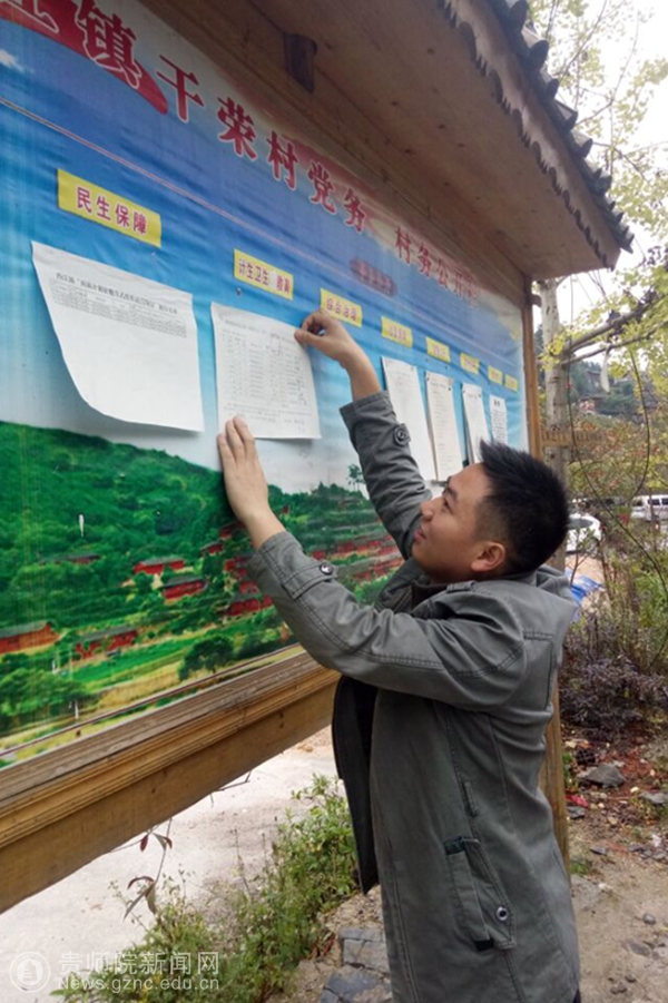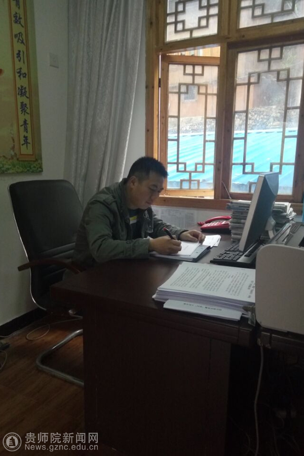 雷山县西江镇因其地理位置和西江千户苗寨景区的民族文化优势,一般进入旅游旺季,加之以前的郎西旅游道路可进入性差,经常出现双向车辆缓行,这个时候园区(西江镇)的干部就得上岗执勤,到公路旁指挥车辆有序进入核心景区停车场,特别是2015年“十一黄金周”期间,他和正式干部一样,在拥堵的长龙边有条不紊指挥车辆,为游客解答和提供帮助。很难想像早上八点上班,晚上十点半还在盘山公路上坚守着,像这样的“战斗”他每场都参加其中。这两年多以来,每一年的节假日黄金周、旅游旺季的周末,他都与他的“同事们”一起,没有半句怨言。这次,我们有幸能在周末采访到他,短暂的见面和集聚寒暄采访合影之后,他又去整理农村危房改造的“民心”事。我作为学弟,真心疼他,他白天尽量完成工作,晚上回到活动板房(寝室)勤学以求成“公”。
