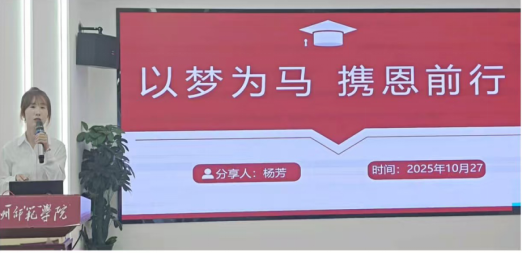 由我院本年度获得国家奖学金的同学分别做经验分享。她们用自己的经历告诉同学们:青春不仅要有梦想,更要有为梦想奋斗的勇气,每一次努力不一定会成功,但每一次尝试都是向前的一大步,无奋斗,不青春,在这个充满无限可能的年龄,我们应该努力追求自己的梦想和目标,以奋斗的姿态激扬青春,一起在未来的道路上书写属于我们的精彩篇章。