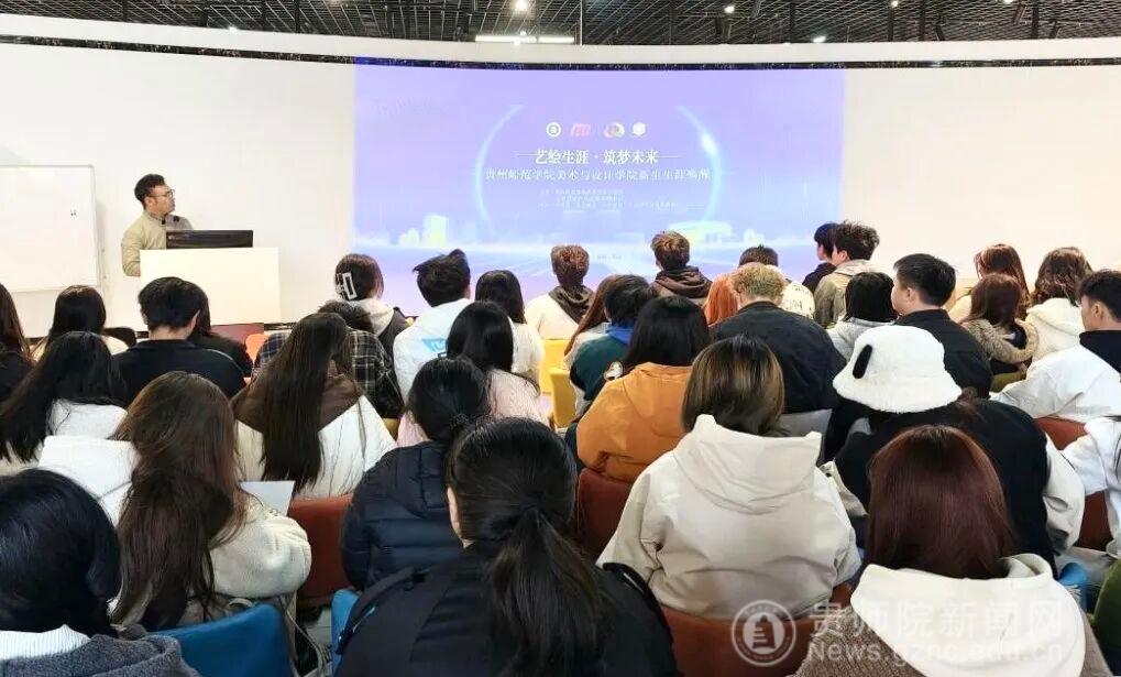 本网讯 为助力新生明确生涯方向、提升专业认知与规划意识,近日,万象城网页版美术与设计学院在逸夫楼艺术实践工坊举办“艺绘生涯·筑梦未来”生涯规划系列讲座。活动由学院党委副书记邱琴、辅导员陈代威先后主持,特邀乌当区家庭教育指导中心副主任申立强担任全系列主讲,面向2025级公共艺术、数字媒体艺术、美术学专业全体新生。