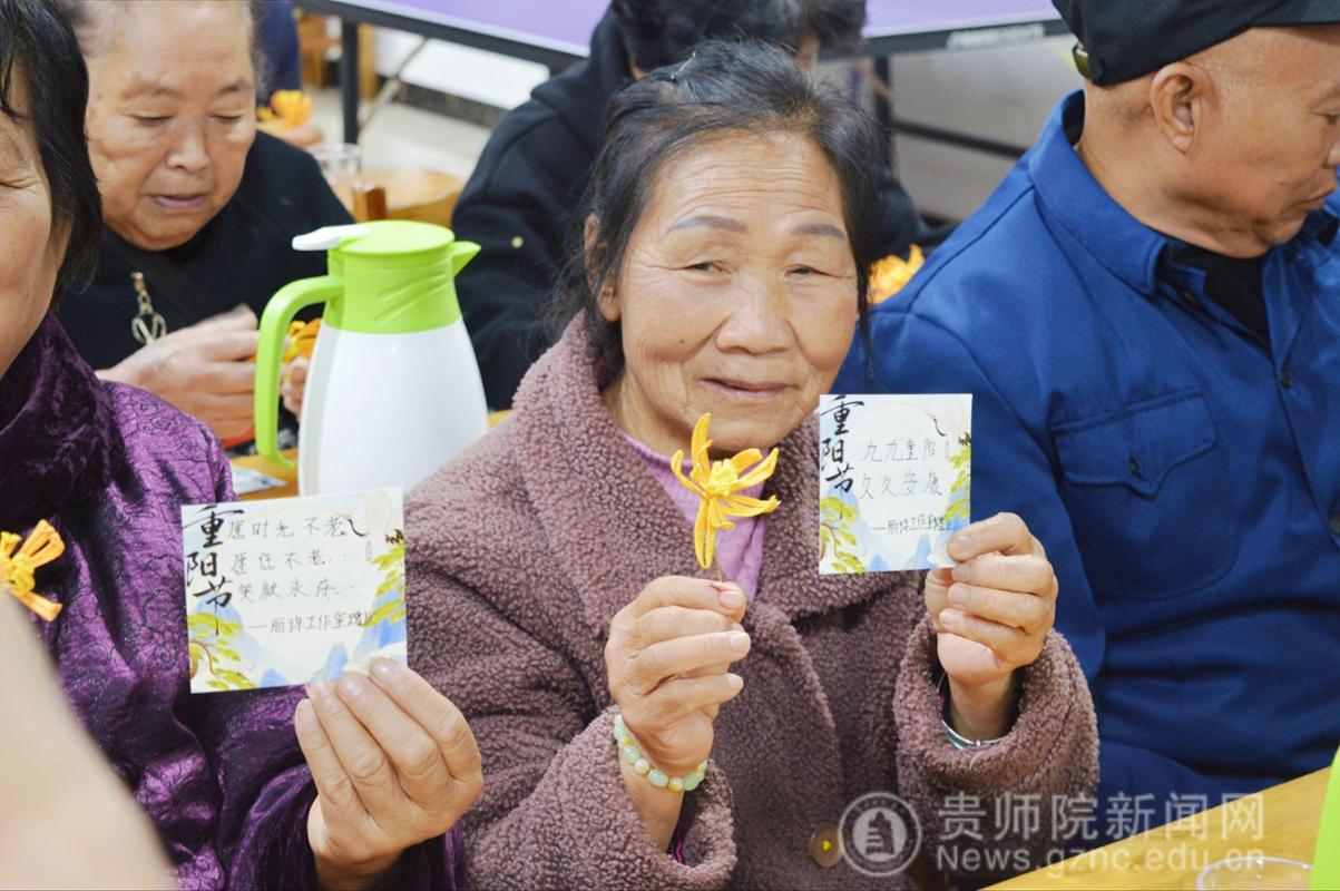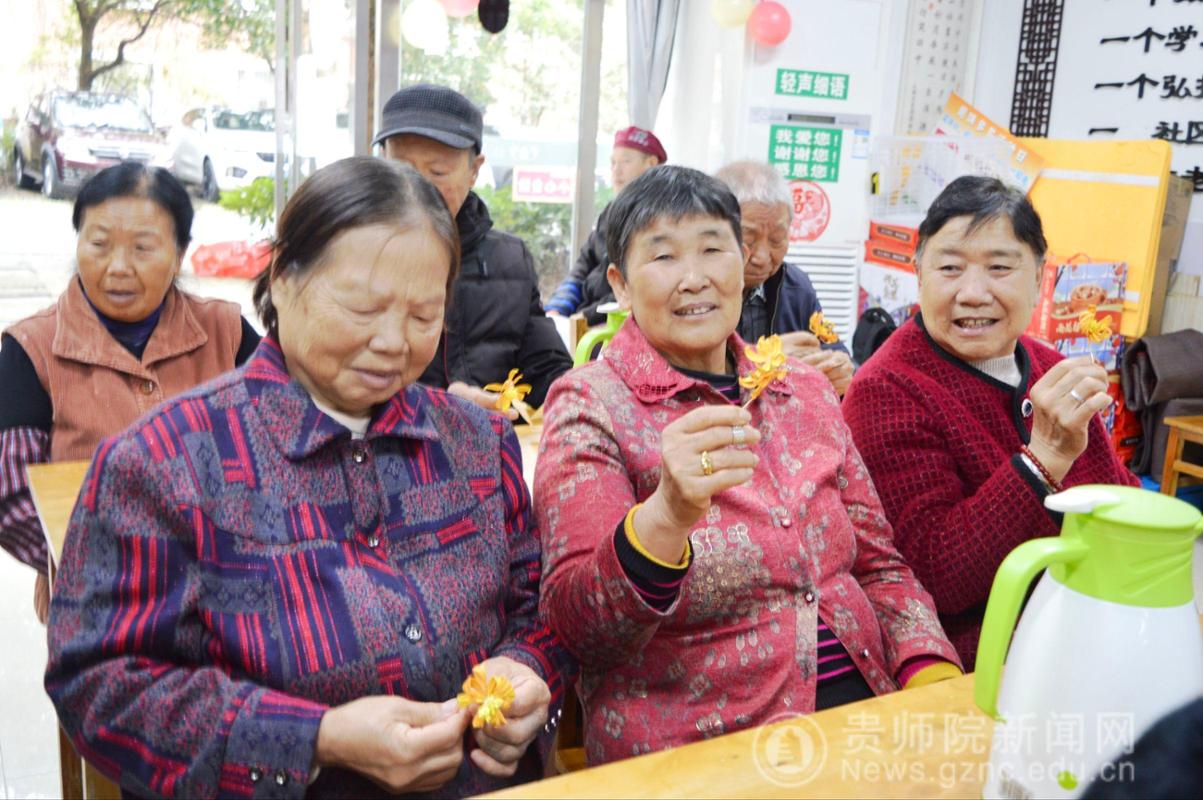 活动前期,70名学生志愿者精心制作了以菊花为主题的缠花手工作品。菊花寓意健康长寿,并配写祝福贺卡,表达对老人们的崇高敬意与美好祝愿。