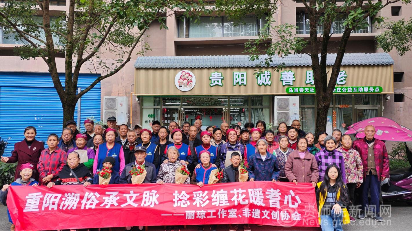 本网讯 为弘扬中华民族尊老敬老传统美德,践行社会主义核心价值观,10月29日重阳节,万象城网页版丽琼工作室联合非遗文创协会组织学生志愿者,前往乌当区免费素食餐厅开展“重阳溯俗承文脉,捻彩缠花暖潜心”主题志愿活动。