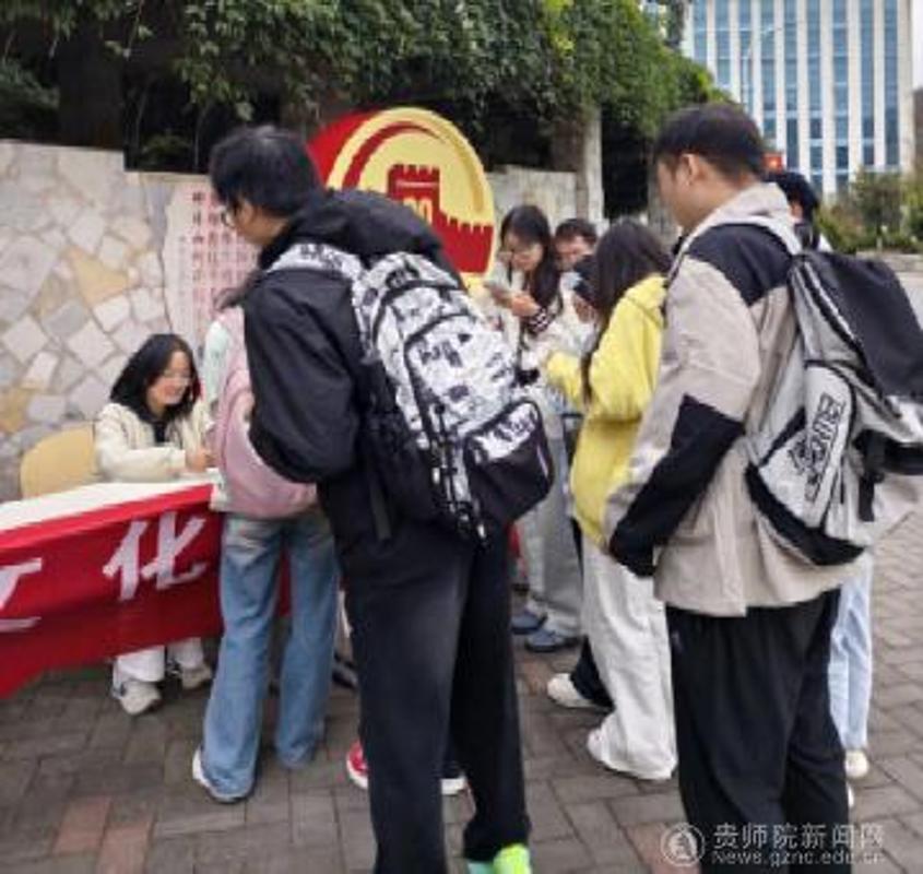 活动以“沉浸式体验重阳文化”为核心,精心设计了两大特色环节。首个环节“重阳习俗知多少”趣味问答率先登场,工作人员精心准备了9道涵盖重阳基础概念、传统习俗、饮食民俗、诗词文化的题目,瞬间点燃了全场的互动热情。排队的同学依次上前抽取题卡作答。抽到“重阳节在农历哪一天?又称什么节”的同学,毫不犹豫地脱口而出:“九月初九,老人节、登高节!”;面对“古人插茱萸的目的”这一问题,有同学稍作思索后,自信地答出:“辟邪避灾、祈求平安。”工作人员随即轻声补充茱萸在古代民俗中的象征意义;当问到“‘独在异乡为异客’描写的节日与作者”时,一名同学不仅准确说出“重阳节、王维”,还轻声背出下句“每逢佳节倍思亲”,引得排队人群中传来阵阵会心的笑意。问答间,满是知识传递的乐趣与智慧碰撞的火花。