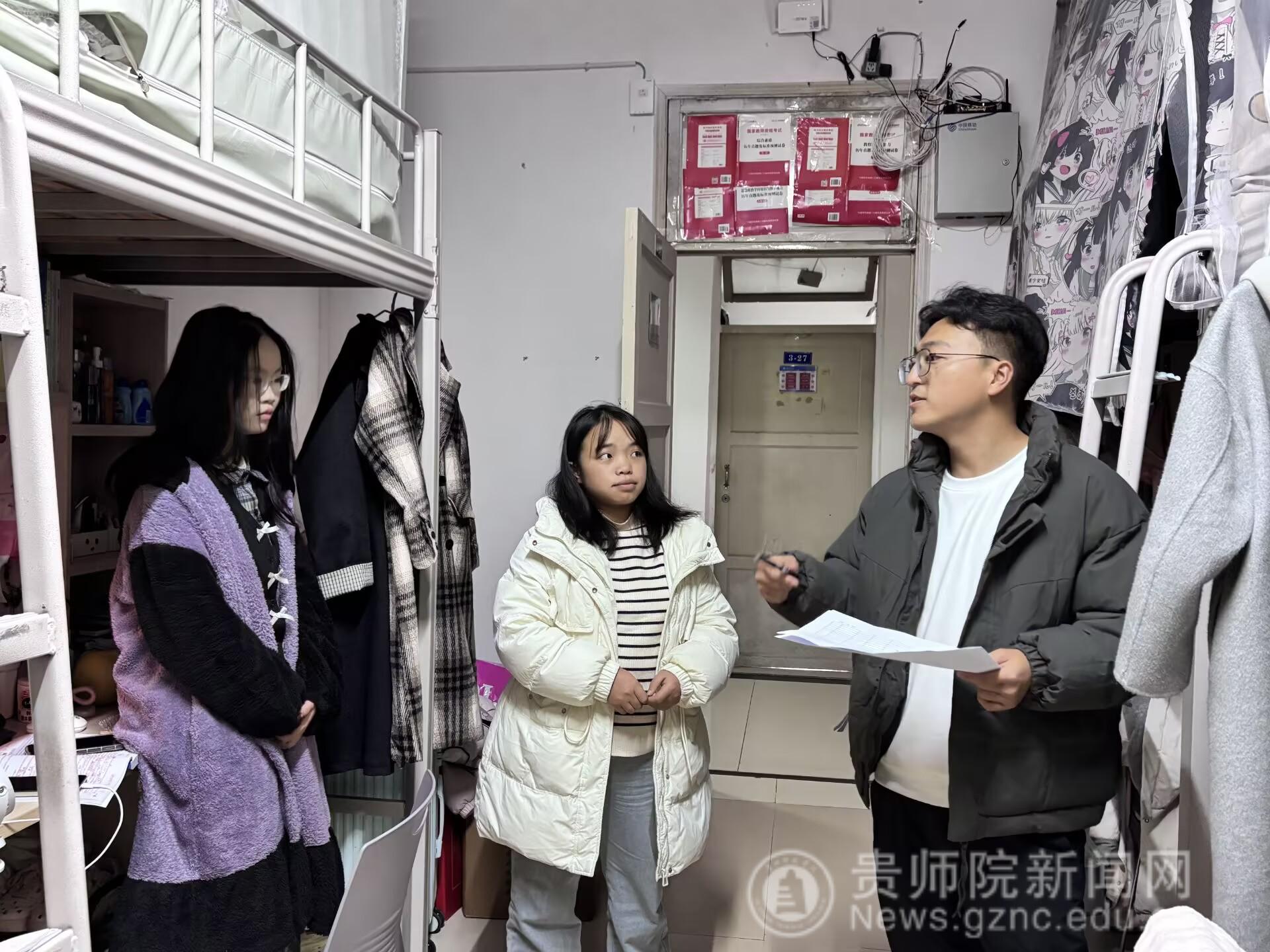 检查过程中,老师们坚持“安全检查+思政教育+成长指导” 三位一体模式。结合冬季典型安全事故案例,既强调“安全第一,预防为主”的底线思维,又融入责任担当、集体主义等思想政治教育,引导学生认识到宿舍安全既是个人健康成长的基础,也是集体和谐稳定的保障,鼓励大家以主人翁姿态共建共享平安校园,将安全意识、责任意识内化于心、外化于行。同时,老师们主动关切学生的学业进展、考研就业规划、实习实践动态,耐心倾听大家在专业提升、职业选择、生活适应等方面的困惑与诉求。针对语言专业学生的发展特点,辅导员结合学院优质资源与行业发展趋势,为考研学生提供备考时间规划建议,为就业学生分享外语类岗位求职技巧,为有留学意向的学生解答申请流程疑问,切实将“关心学生未来发展”落到实处。