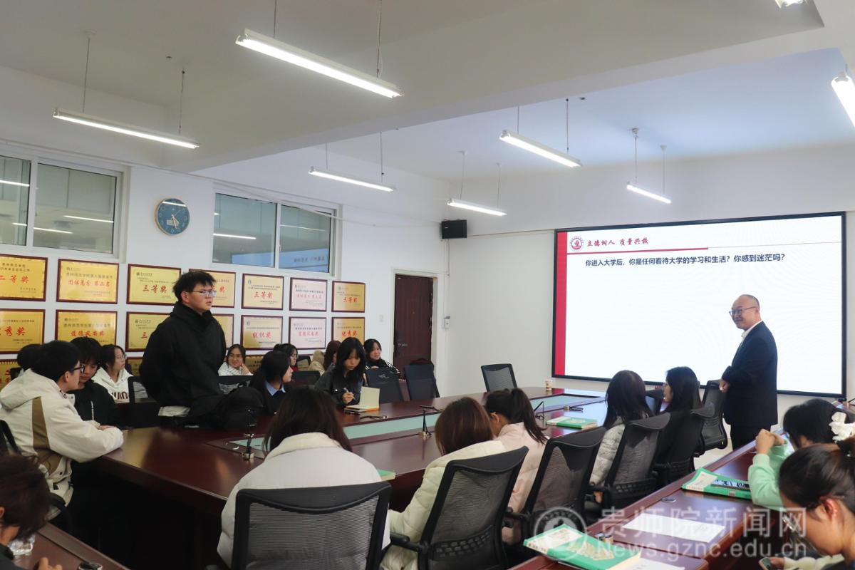 讲座伊始,孟泽彬向大家隆重介绍了杨超老师,强调此次讲座对同学们未来职业规划具有重要意义,希望大家能认真聆听,有所收获。随后,杨超声情并茂地讲述了自己从初入教坛时的迷茫,到逐渐找准方向、教学思路日益清晰的成长历程。他分享了在教学过程中遇到的各类挑战,比如如何怎样应对不同学习层次学生的需求等,以及自己是如何通过不断学习、创新教学方法等方式一一克服这些困难的。在互动环节,杨超亲切地与同学们交流,同学们纷纷敞开心扉,有的说对专业学习的方向感到困惑,有的提及在平衡学习与课余生活时的迷茫。杨超认真倾听后,结合自身经历和对教育、成长的理解,为同学们答疑解惑,分享应对迷茫的方法,鼓励大家积极探索、勇于尝试,在迷茫中寻找方向。现场氛围热烈而温馨。